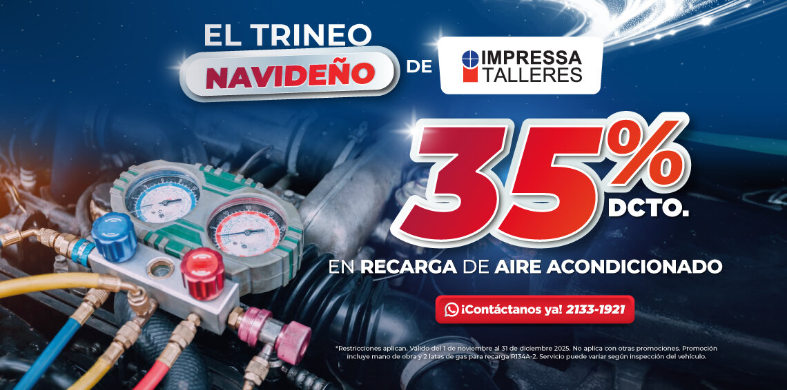 *Restricciones aplican. Válido del 1 de noviembre al 31 de diciembre 2025. No aplica con otras promociones. Promoción incluye mano de obra y 2 latas de gas para recarga R134A-2. Servicio puede variar según inspección del vehículo