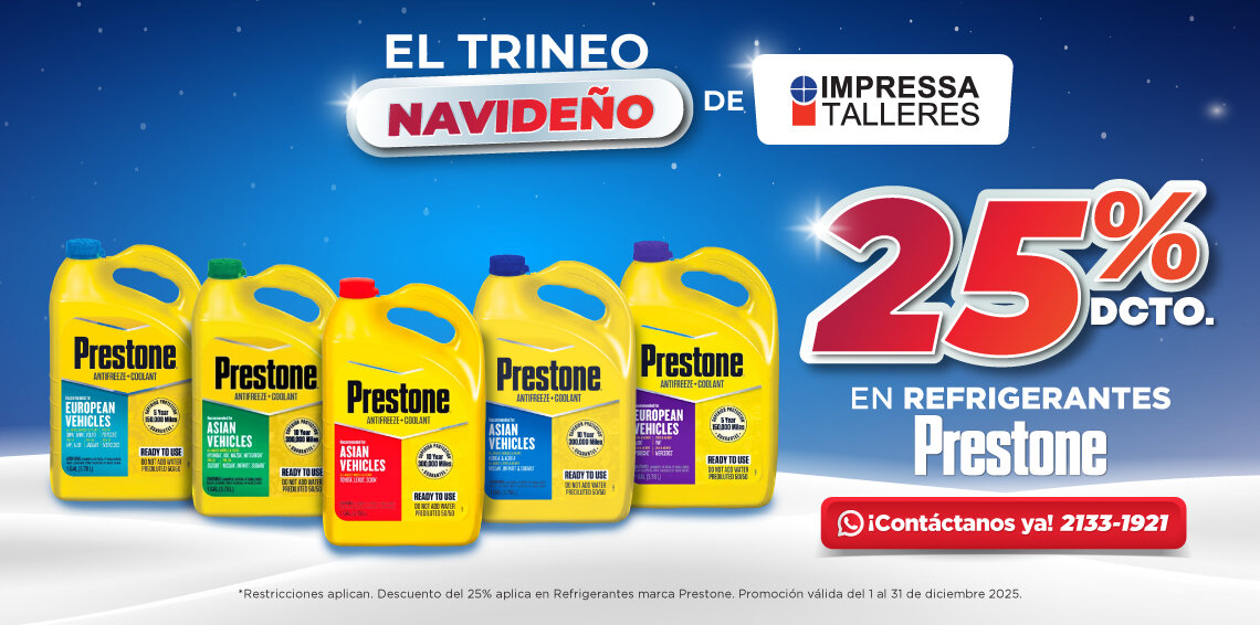 *Restricciones aplican. Descuento aplica en refrigerantes marca Prestone. Vigencia del 1 al 31 de diciembre de 2025. Aplica en cualquier forma de pago, no aplica para venta de empresas y gobierno.